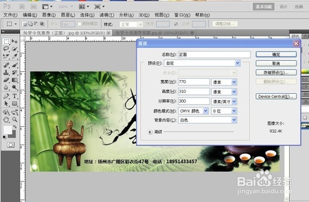 2,新建一個(gè)和原文件一樣大小的文件,在填寫(xiě)信息的時(shí)候要注意。分辨率好選300px,顏色模式選擇CMYK顏色。都設(shè)定完后,選擇確定。
