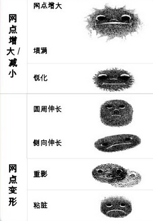 銳化 銳化表示色調(diào)變淡,網(wǎng)點變得比膠片上的小。印刷工人往往將銳化理解為網(wǎng)點增大程度的 減小,雖然此時印刷紙張上的網(wǎng)點仍然比膠片上的更豐或更滿。
